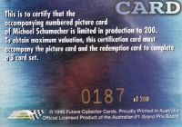 Die Futera Karte mit der Bezeichnung Michael Schumacher "World Champion 94-95" ist streng limitiert auf 200 Stück! |